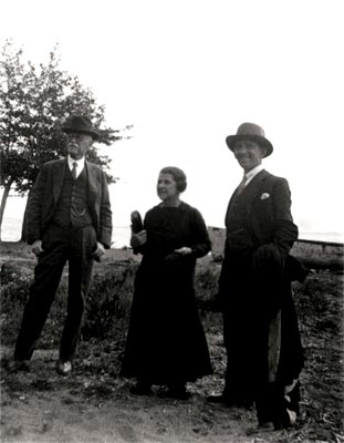 Carlos E. Restrepo, doña Isabel Gaviria de Restrepo y Fernando González.