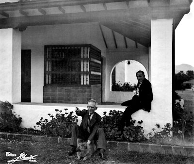 Fernando González y Luis E. Osorio. Esta fotografía de Jorge Obando acompaña el reportaje «Fernando González me dijo…» de Luis Enrique Osorio, publicado en la revista Cromos en marzo 7 de 1942. Fotografía por Jorge Obando.