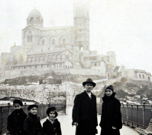 Fernando González y doña Margarita con sus hijos Álvaro, Ramiro y Pilar. Iglesia Nuestra Señora de la Guarda, Marsella, 30 de diciembre de 1932.