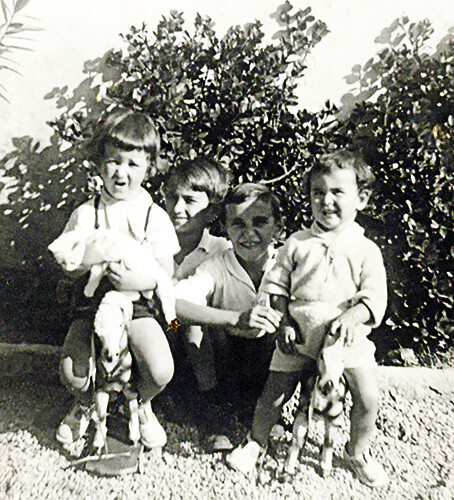 Fernando, Álvaro, Ramiro, Simón González y la gata Salomé. Marsella, Francia, 1933.