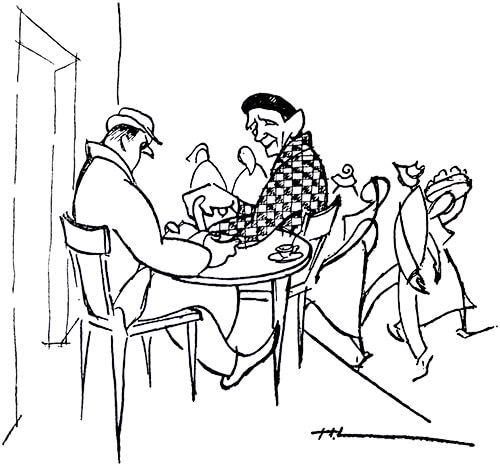 Félix Ángel Vallejo y Fernando González. Ilustración de Horacio Longas para Viajes de un novicio con Lucas de Ochoa.