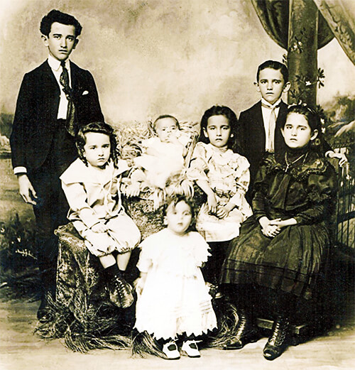 Familia González Ochoa – 1907. Alfonso, Daniel, Alberto, Graciela, Fernando y Sofía. De pie, adelante, Jorge.
