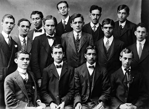 Fernando González (de pie, segundo de izquierda a derecha) y el grupo La Fragua. Foto Rodríguez, 1913 (BPP), tomada de Memoria Visual de Medellín.