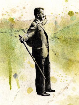 Fernando González. Pintura por Daniel Gómez Henao, serie Viaje a pie.