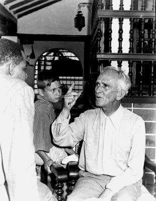 Fernando González en Otraparte con su nieto mayor Lucas Felipe González. Foto por Carlos Rodríguez Gaviria, febrero de 1958, FAES.
