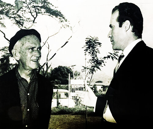 Fernando González y Manuel Mejía Vallejo en Otraparte a principios de la década del sesenta. Foto cortesía de Valeria Mejía.